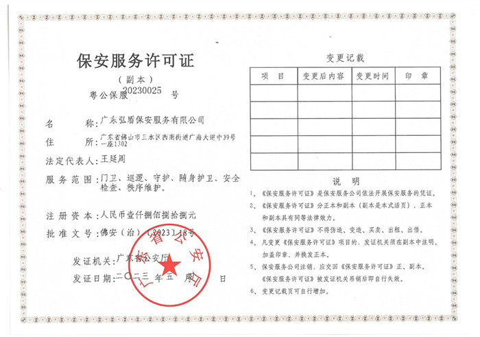 廣東弘盾保安服務有限公司東莞分公司是經東莞市公安局嚴格審核,廣東省公安廳批準頒發《保安服務許可證》,在東莞市工商行政管理機關登記注冊的,依法開展門衛、巡邏守護、秩序維護、隨身護衛,安全檢查等綜合安保服務的專業保安服務公司... [詳細介紹]